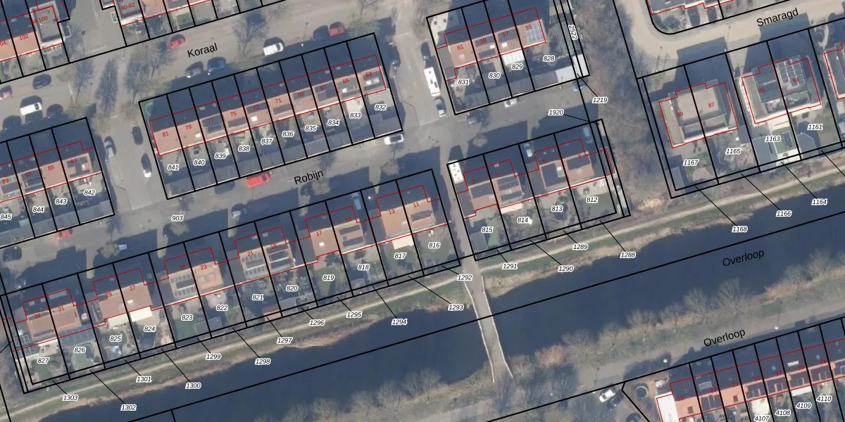 Gebruik de zoekbalk of klik op een perceel voor informatie over de adressen binnen dit perceel.