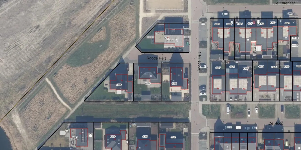 Het perceel waarop Roode Hert 33 staat heeft een oppervlakte van 469 m². Dit is een groot perceel. De perceeloppervlakte wordt geregistreerd door het Kadaster. Gedetailleerde informatie over de maten van dit perceel kunt u vinden in het rapport Kadastrale kaart met maatvoering van Roode Hert 33.