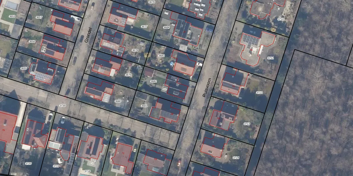 Het perceel waarop Ruisvoorn 26 staat heeft een oppervlakte van 453 m². Dit is een groot perceel. De perceeloppervlakte wordt geregistreerd door het Kadaster. Gedetailleerde informatie over de maten van dit perceel kunt u vinden in het rapport Kadastrale kaart met maatvoering van Ruisvoorn 26.