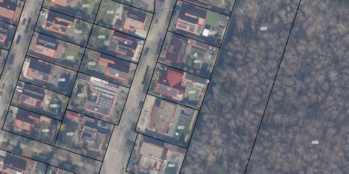 Het perceel waarop Ruisvoorn 51 staat heeft een oppervlakte van 608 m². Dit is een groot perceel. De perceeloppervlakte wordt geregistreerd door het Kadaster. Gedetailleerde informatie over de maten van dit perceel kunt u vinden in het rapport Kadastrale kaart met maatvoering van Ruisvoorn 51.