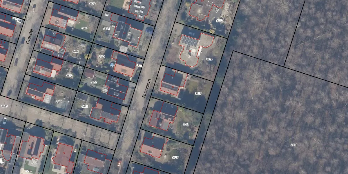 Het perceel waarop Ruisvoorn 61 staat heeft een oppervlakte van 617 m². Dit is een groot perceel. De perceeloppervlakte wordt geregistreerd door het Kadaster. Gedetailleerde informatie over de maten van dit perceel kunt u vinden in het rapport Kadastrale kaart met maatvoering van Ruisvoorn 61.