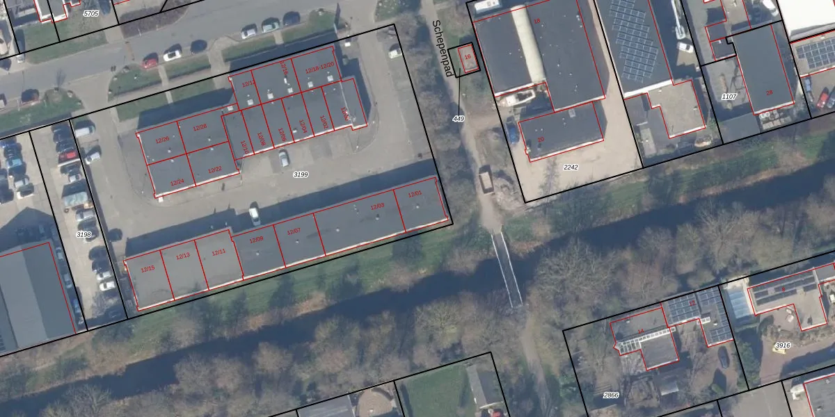 Het perceel waarop Schepenveld 12-01 staat heeft een oppervlakte van 4056 m². Dit is een zeer groot perceel. De perceeloppervlakte wordt geregistreerd door het Kadaster. Gedetailleerde informatie over de maten van dit perceel kunt u vinden in het rapport Kadastrale kaart met maatvoering van Schepenveld 12-01.