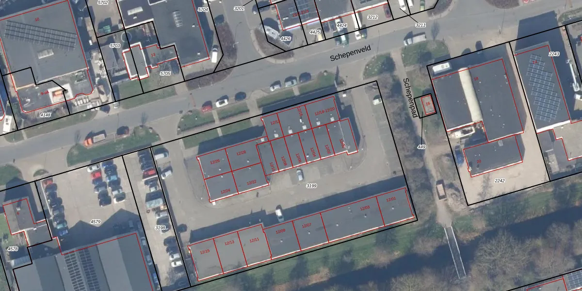 Het perceel waarop Schepenveld 12-06 staat heeft een oppervlakte van 4056 m². Dit is een zeer groot perceel. De perceeloppervlakte wordt geregistreerd door het Kadaster. Gedetailleerde informatie over de maten van dit perceel kunt u vinden in het rapport Kadastrale kaart met maatvoering van Schepenveld 12-06.