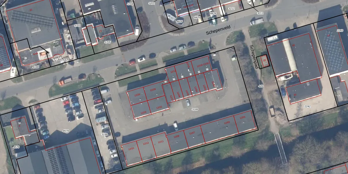Het perceel waarop Schepenveld 12-08 staat heeft een oppervlakte van 4056 m². Dit is een zeer groot perceel. De perceeloppervlakte wordt geregistreerd door het Kadaster. Gedetailleerde informatie over de maten van dit perceel kunt u vinden in het rapport Kadastrale kaart met maatvoering van Schepenveld 12-08.