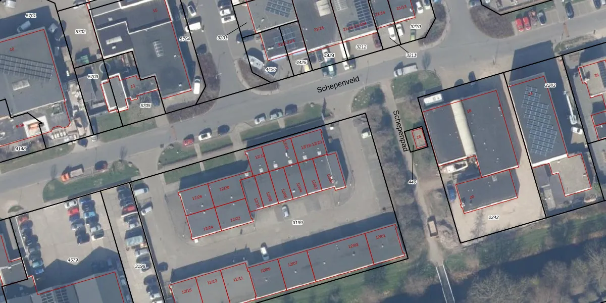 Het perceel waarop Schepenveld 12-18 staat heeft een oppervlakte van 4056 m². Dit is een zeer groot perceel. De perceeloppervlakte wordt geregistreerd door het Kadaster. Gedetailleerde informatie over de maten van dit perceel kunt u vinden in het rapport Kadastrale kaart met maatvoering van Schepenveld 12-18.