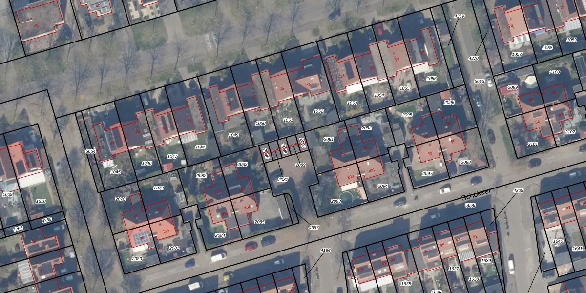 Gebruik de zoekbalk of klik op een perceel voor informatie over de adressen binnen dit perceel.