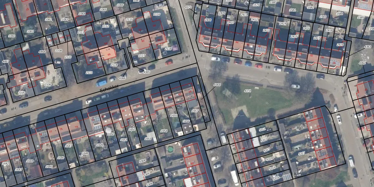 Het perceel waarop Schokker 55 staat heeft een oppervlakte van 197 m². Dit is een middelgroot perceel. De perceeloppervlakte wordt geregistreerd door het Kadaster. Gedetailleerde informatie over de maten van dit perceel kunt u vinden in het rapport Kadastrale kaart met maatvoering van Schokker 55.