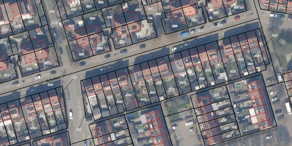 Het perceel waarop Schokker 77 staat heeft een oppervlakte van 164 m². Dit is een middelgroot perceel. De perceeloppervlakte wordt geregistreerd door het Kadaster. Gedetailleerde informatie over de maten van dit perceel kunt u vinden in het rapport Kadastrale kaart met maatvoering van Schokker 77.