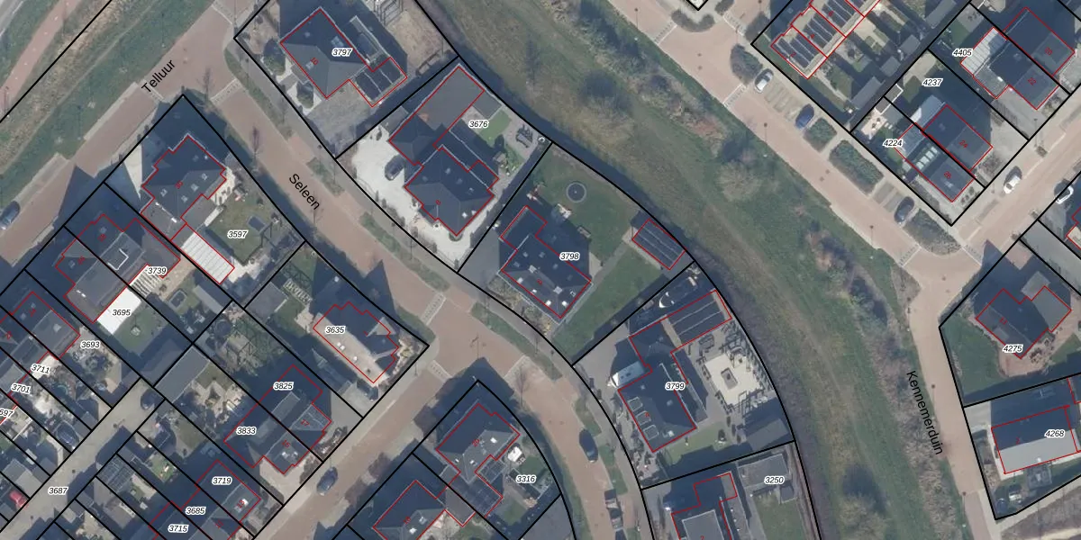 Het perceel waarop Seleen 6 staat heeft een oppervlakte van 929 m². Dit is een groot perceel. De perceeloppervlakte wordt geregistreerd door het Kadaster. Gedetailleerde informatie over de maten van dit perceel kunt u vinden in het rapport Kadastrale kaart met maatvoering van Seleen 6.