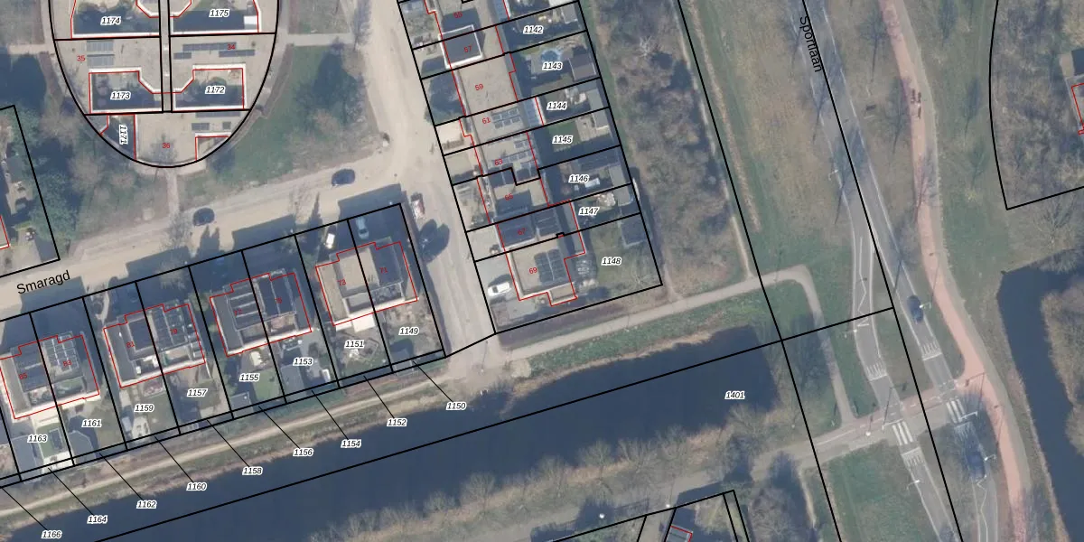 Het perceel waarop Smaragd 69 staat heeft een oppervlakte van 444 m². Dit is een groot perceel. De perceeloppervlakte wordt geregistreerd door het Kadaster. Gedetailleerde informatie over de maten van dit perceel kunt u vinden in het rapport Kadastrale kaart met maatvoering van Smaragd 69.
