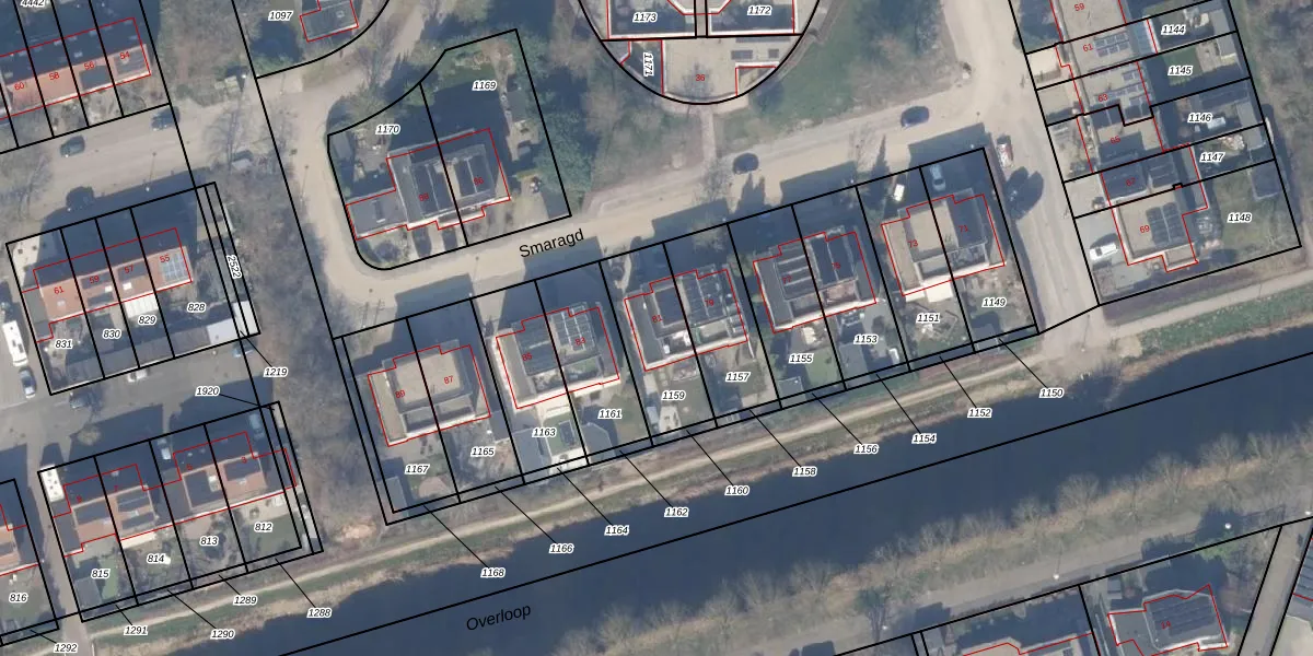 Gebruik de zoekbalk of klik op een perceel voor informatie over de adressen binnen dit perceel.