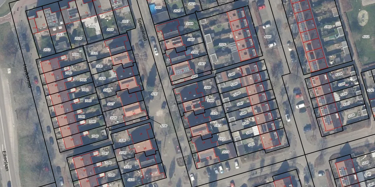 Gebruik de zoekbalk of klik op een perceel voor informatie over de adressen binnen dit perceel.