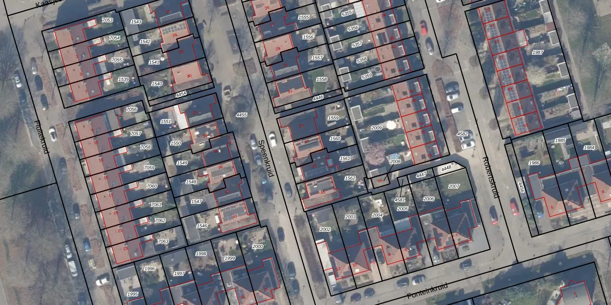Het perceel waarop Speenkruid 37 staat heeft een oppervlakte van 158 m². Dit is een middelgroot perceel. De perceeloppervlakte wordt geregistreerd door het Kadaster. Gedetailleerde informatie over de maten van dit perceel kunt u vinden in het rapport Kadastrale kaart met maatvoering van Speenkruid 37.