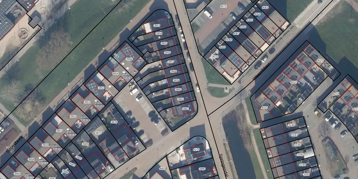 Het perceel waarop Springendal 25 staat heeft een oppervlakte van 136 m². Dit is een middelgroot perceel. De perceeloppervlakte wordt geregistreerd door het Kadaster. Gedetailleerde informatie over de maten van dit perceel kunt u vinden in het rapport Kadastrale kaart met maatvoering van Springendal 25.