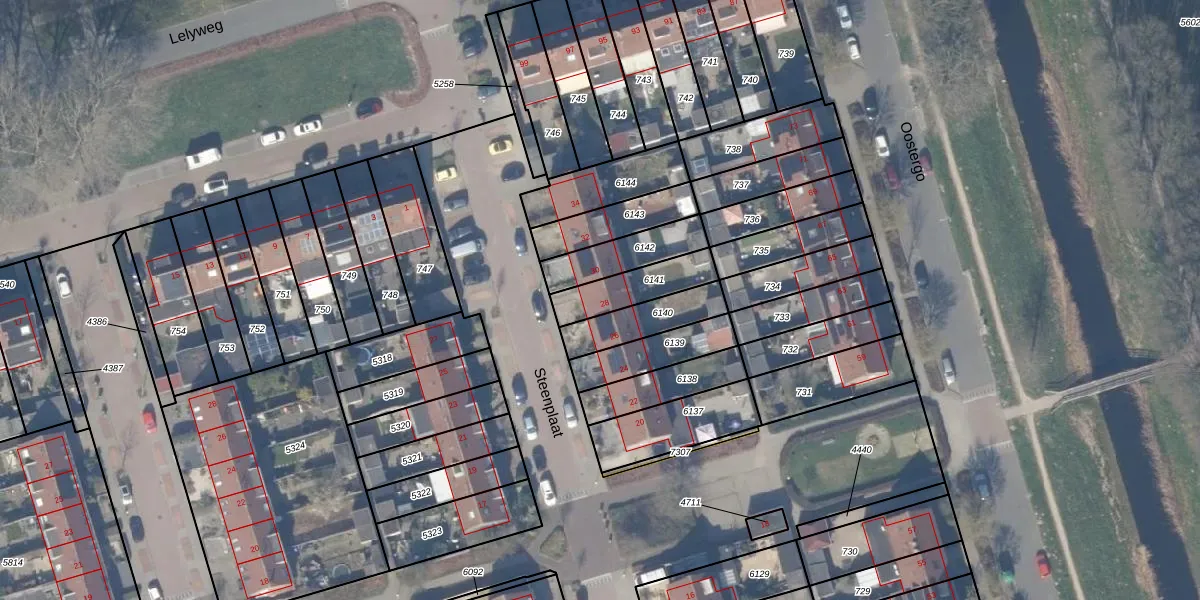 Gebruik de zoekbalk of klik op een perceel voor informatie over de adressen binnen dit perceel.