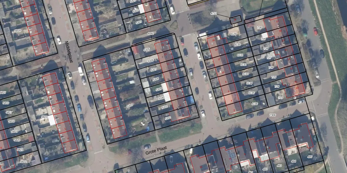 Gebruik de zoekbalk of klik op een perceel voor informatie over de adressen binnen dit perceel.
