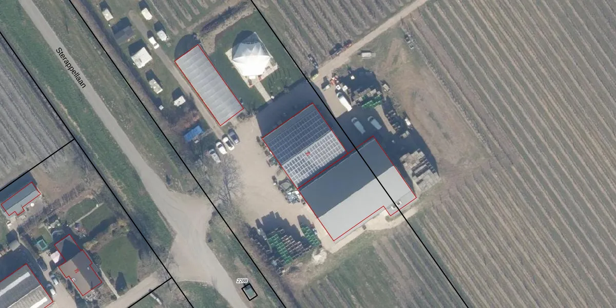 Het perceel waarop Sterappellaan 29 staat heeft een oppervlakte van 2,3 ha. Dit is een zeer groot perceel. De perceeloppervlakte wordt geregistreerd door het Kadaster. Gedetailleerde informatie over de maten van dit perceel kunt u vinden in het rapport Kadastrale kaart met maatvoering van Sterappellaan 29.