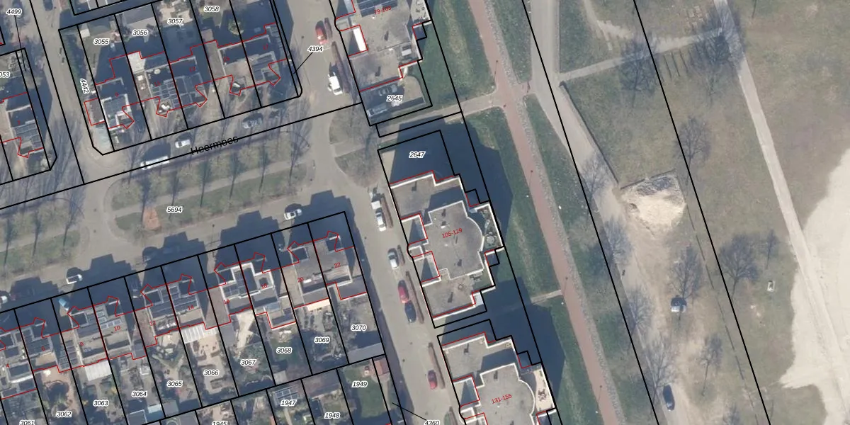 Het adres ligt op het perceel ZWD03-A-2647, dat zich in de kadastrale gemeente Zeewolde bevindt. De gemiddelde perceelgrootte in Zeewolde is 1,9 ha. Dit perceel is kleiner: de perceeloppervlakte bedraagt 770 m². De grootste perceeloppervlakte in de kadastrale gemeente is 6,16 km². De kleinste oppervlakte bedraagt 0 m². Er zijn 20 adressen aanwezig op het perceel. In de Basisregistratie Kadaster (BRK) werden de grenzen van het perceel geregistreerd op 22-03-2000.