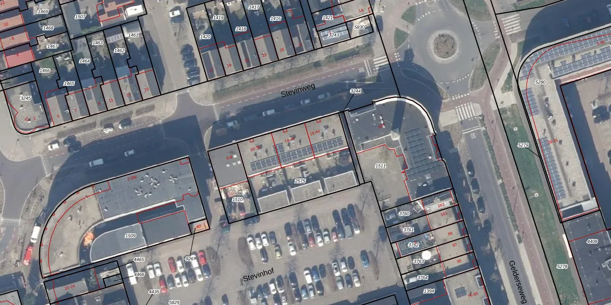 Het perceel waarop Stevinweg 40 staat heeft een oppervlakte van 857 m². Dit is een groot perceel. De perceeloppervlakte wordt geregistreerd door het Kadaster. Gedetailleerde informatie over de maten van dit perceel kunt u vinden in het rapport Kadastrale kaart met maatvoering van Stevinweg 40.