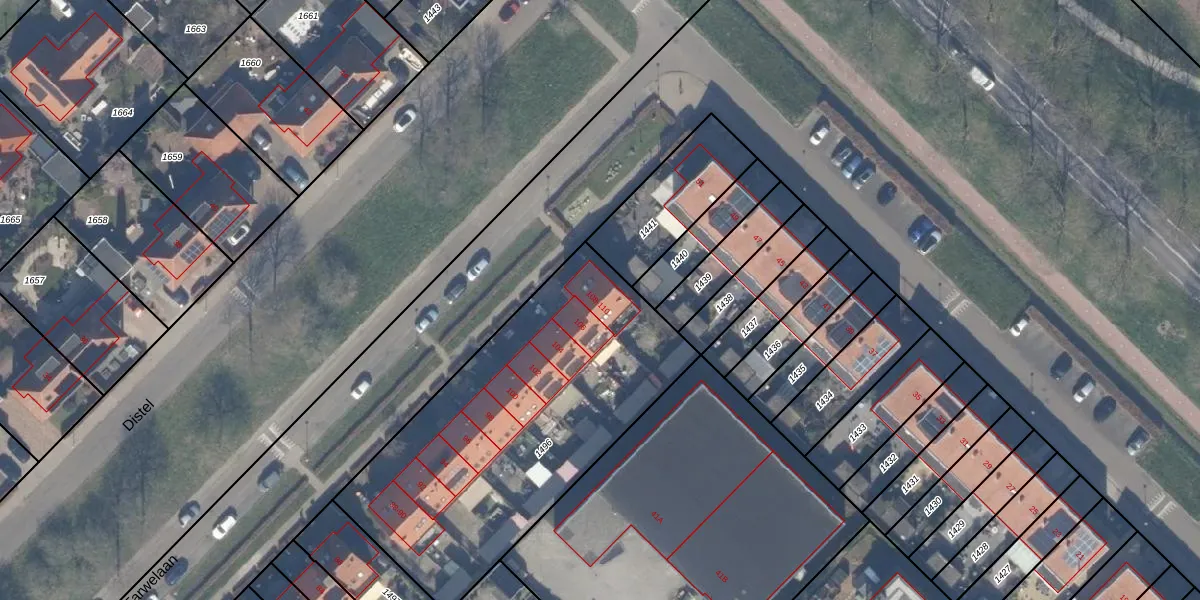 Het perceel waarop het adres ligt is ZWD03-E-1496. De afkorting 'ZWD03' staat voor kadastrale gemeente Zeewolde. Het perceel is kleiner dan gemiddeld in Zeewolde. Het perceel is 1626 m² groot, terwijl het gemiddelde ligt op 1,9 ha. De grootste perceeloppervlakte in de kadastrale gemeente is 6,16 km². De kleinste oppervlakte bedraagt 0 m². Op het perceel zijn 12 adressen aanwezig. In de Basisregistratie Kadaster (BRK) werden de grenzen van het perceel geregistreerd op 08-06-2006.