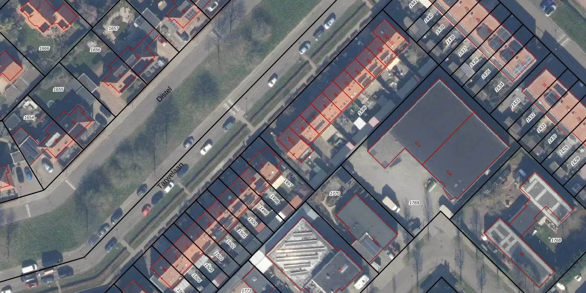 Het perceel waarop Tarwelaan 90 staat heeft een oppervlakte van 1626 m². Dit is een zeer groot perceel. De perceeloppervlakte wordt geregistreerd door het Kadaster. Gedetailleerde informatie over de maten van dit perceel kunt u vinden in het rapport Kadastrale kaart met maatvoering van Tarwelaan 90.