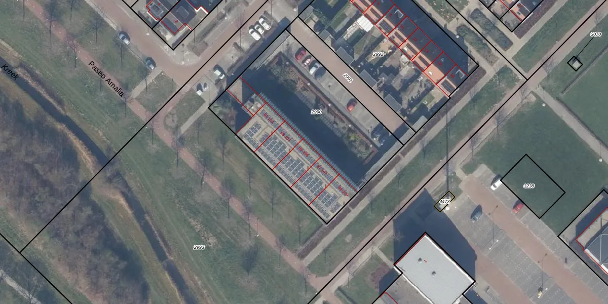 Het adres ligt op het perceel ZWD03-E-2990, dat zich in de kadastrale gemeente Zeewolde bevindt. De gemiddelde perceelgrootte in Zeewolde is 1,9 ha. Dit perceel is kleiner: de perceeloppervlakte bedraagt 1977 m². Het kleinste perceel in de kadastrale gemeente is 0 m² groot. De grootste perceeloppervlakte is 6,16 km². Er zijn 15 adressen aanwezig op het perceel. De laatste wijziging in het de Basisregistratie Kadaster (BRK) was op 06-04-2009.