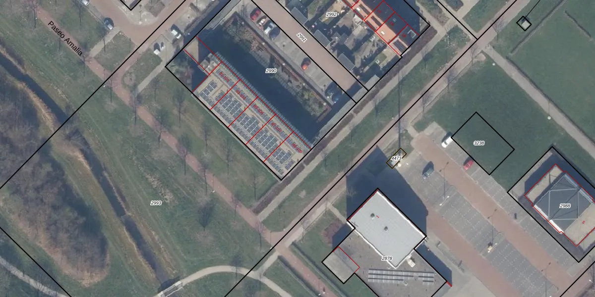 Het adres ligt op het perceel ZWD03-E-2990, dat zich in de kadastrale gemeente Zeewolde bevindt. De gemiddelde perceelgrootte in Zeewolde is 1,9 ha. Dit perceel is kleiner: de perceeloppervlakte bedraagt 1977 m². Het kleinste perceel in de kadastrale gemeente is 0 m² groot. De grootste perceeloppervlakte is 6,16 km². Op het perceel zijn 15 adressen aanwezig. In de Basisregistratie Kadaster (BRK) werden de grenzen van het perceel geregistreerd op 06-04-2009.