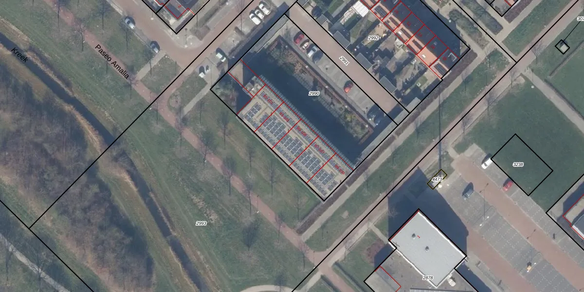 Het adres ligt op het perceel ZWD03-E-2990, dat zich in de kadastrale gemeente Zeewolde bevindt. De gemiddelde perceelgrootte in Zeewolde is 1,9 ha. Dit perceel is kleiner: de perceeloppervlakte bedraagt 1977 m². Het kleinste perceel in de kadastrale gemeente is 0 m² groot. De grootste perceeloppervlakte is 6,16 km². Op het perceel zijn 15 adressen aanwezig. De huidige grenzen van het perceel zijn digitaal in de Basisregistratie Kadaster (BRK) geregistreerd op 06-04-2009.