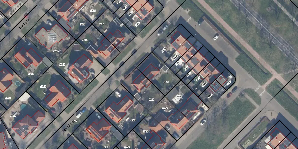 Het perceel waarop Timothee 18 staat heeft een oppervlakte van 407 m². Dit is een groot perceel. De perceeloppervlakte wordt geregistreerd door het Kadaster. Gedetailleerde informatie over de maten van dit perceel kunt u vinden in het rapport Kadastrale kaart met maatvoering van Timothee 18.