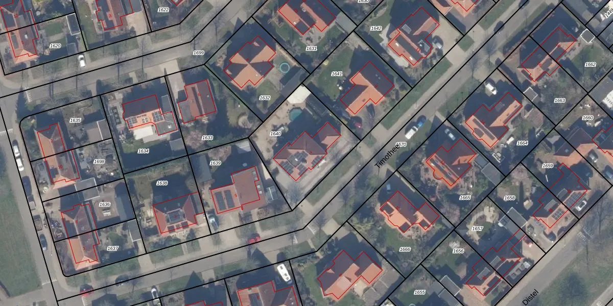 Het perceel waarop Timothee 7 staat heeft een oppervlakte van 771 m². Dit is een groot perceel. De perceeloppervlakte wordt geregistreerd door het Kadaster. Gedetailleerde informatie over de maten van dit perceel kunt u vinden in het rapport Kadastrale kaart met maatvoering van Timothee 7.