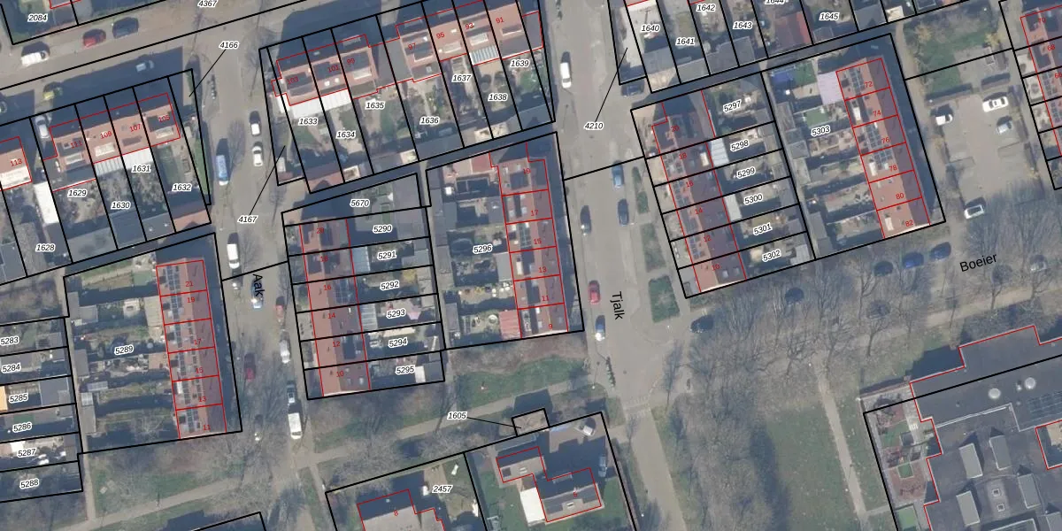Het perceel waarop Tjalk 13 staat heeft een oppervlakte van 935 m². Dit is een groot perceel. De perceeloppervlakte wordt geregistreerd door het Kadaster. Gedetailleerde informatie over de maten van dit perceel kunt u vinden in het rapport Kadastrale kaart met maatvoering van Tjalk 13.