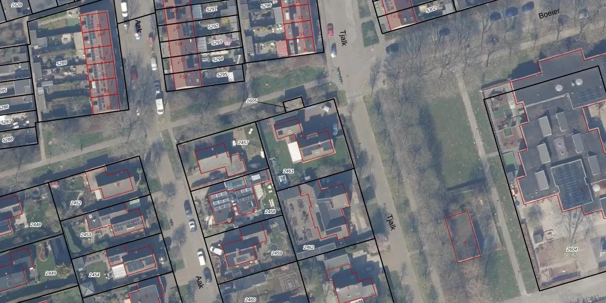 Het perceel waarop Tjalk 5 staat heeft een oppervlakte van 646 m². Dit is een groot perceel. De perceeloppervlakte wordt geregistreerd door het Kadaster. Gedetailleerde informatie over de maten van dit perceel kunt u vinden in het rapport Kadastrale kaart met maatvoering van Tjalk 5.