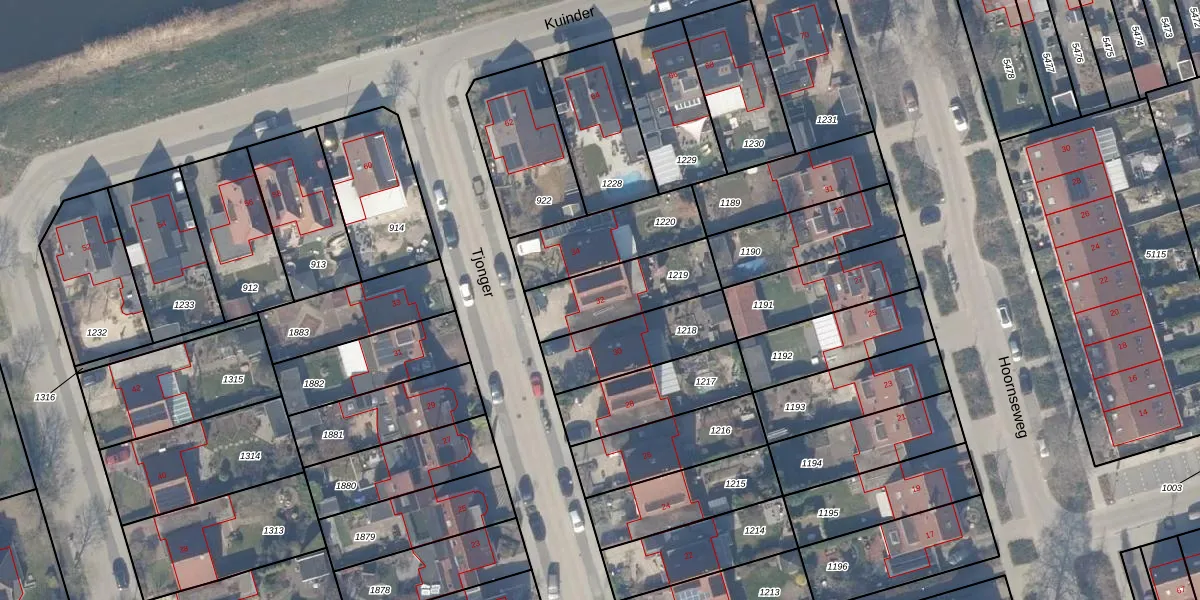 Gebruik de zoekbalk of klik op een perceel voor informatie over de adressen binnen dit perceel.