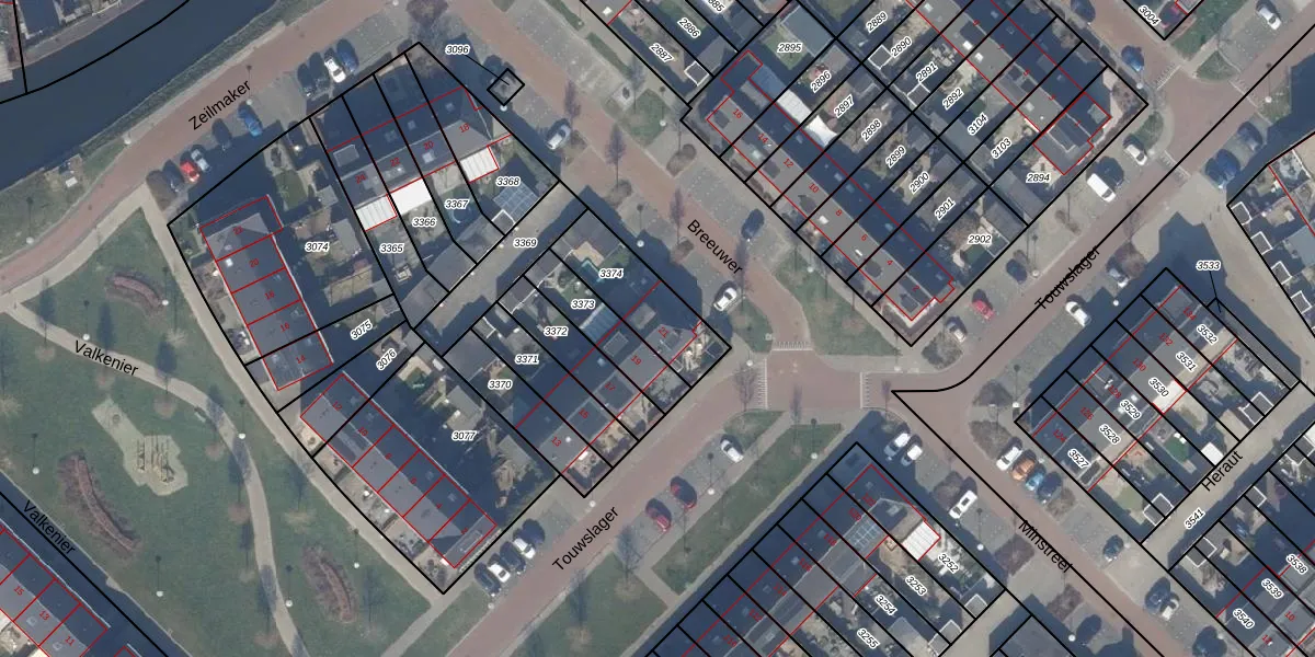 Gebruik de zoekbalk of klik op een perceel voor informatie over de adressen binnen dit perceel.