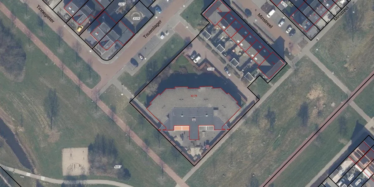 Het perceel waarop Touwslager 72 staat heeft een oppervlakte van 3512 m². Dit is een zeer groot perceel. De perceeloppervlakte wordt geregistreerd door het Kadaster. Gedetailleerde informatie over de maten van dit perceel kunt u vinden in het rapport Kadastrale kaart met maatvoering van Touwslager 72.