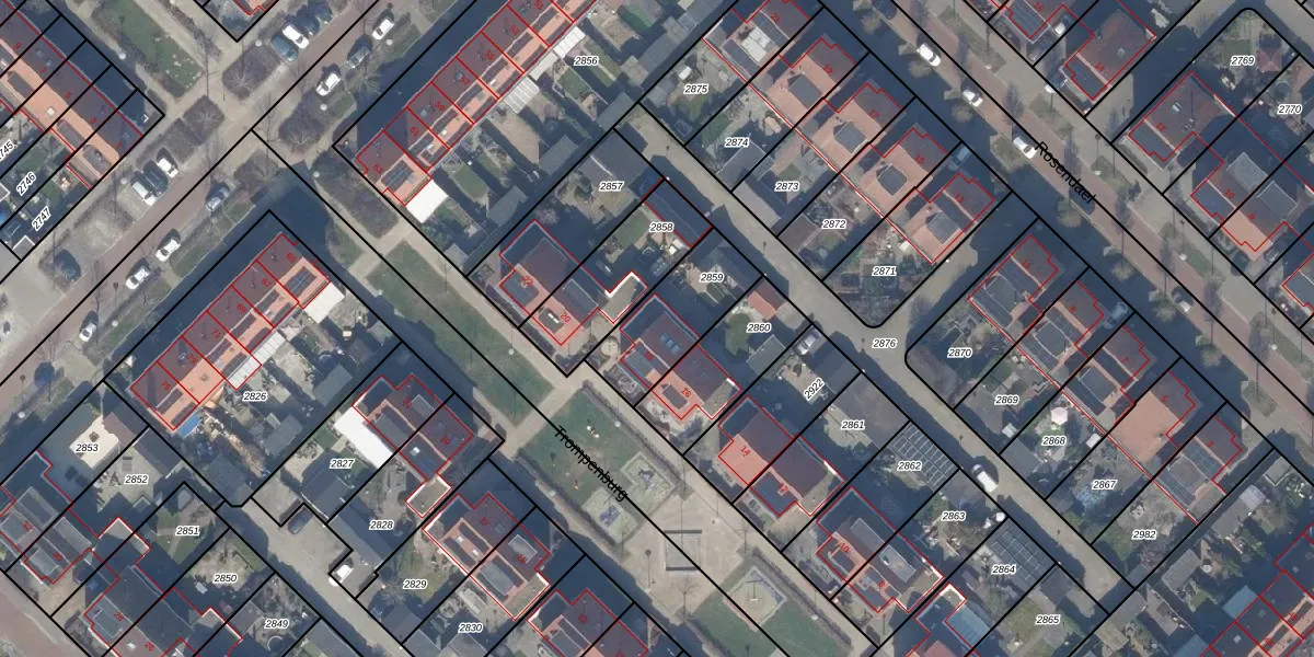 Het perceel waarop Trompenburg 18 staat heeft een oppervlakte van 296 m². Dit is een middelgroot perceel. De perceeloppervlakte wordt geregistreerd door het Kadaster. Gedetailleerde informatie over de maten van dit perceel kunt u vinden in het rapport Kadastrale kaart met maatvoering van Trompenburg 18.