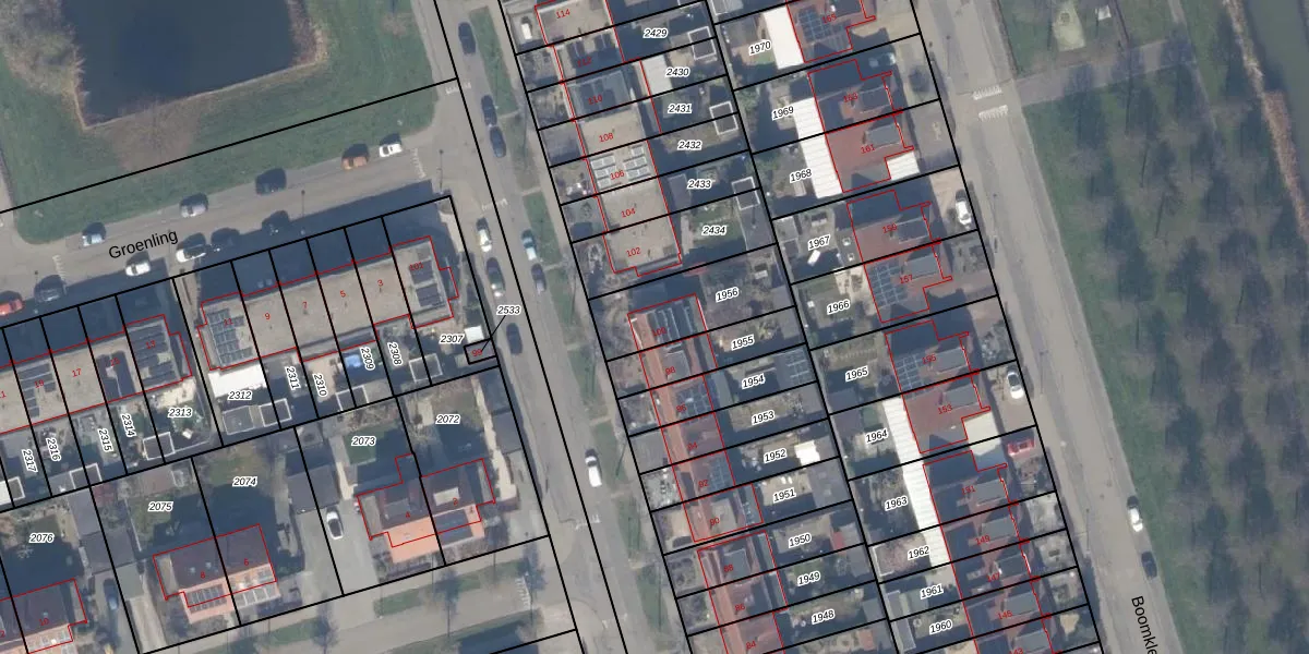 Gebruik de zoekbalk of klik op een perceel voor informatie over de adressen binnen dit perceel.
