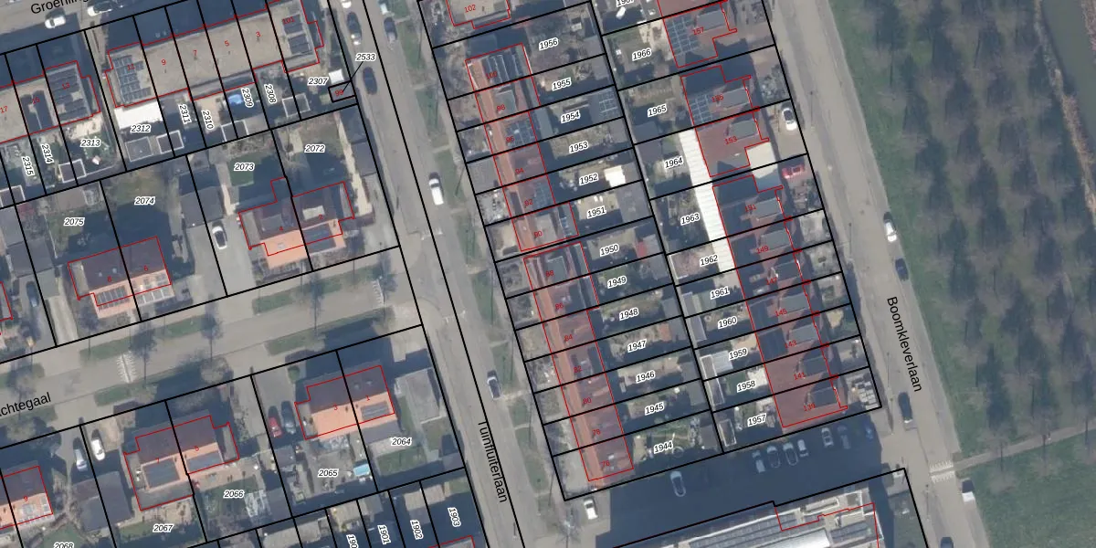 Gebruik de zoekbalk of klik op een perceel voor informatie over de adressen binnen dit perceel.