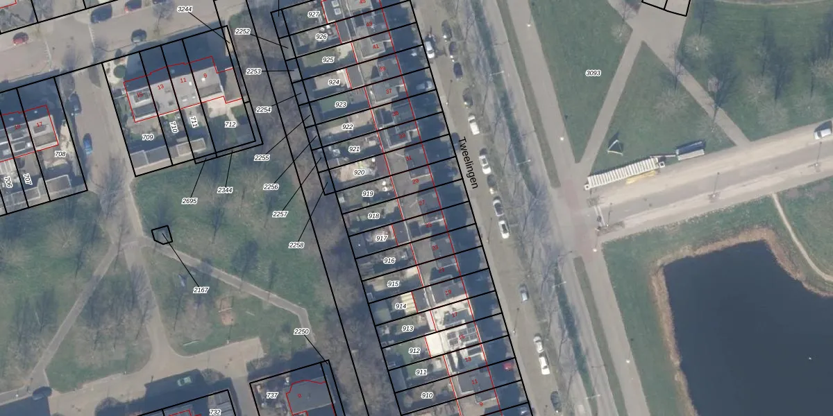 Gebruik de zoekbalk of klik op een perceel voor informatie over de adressen binnen dit perceel.