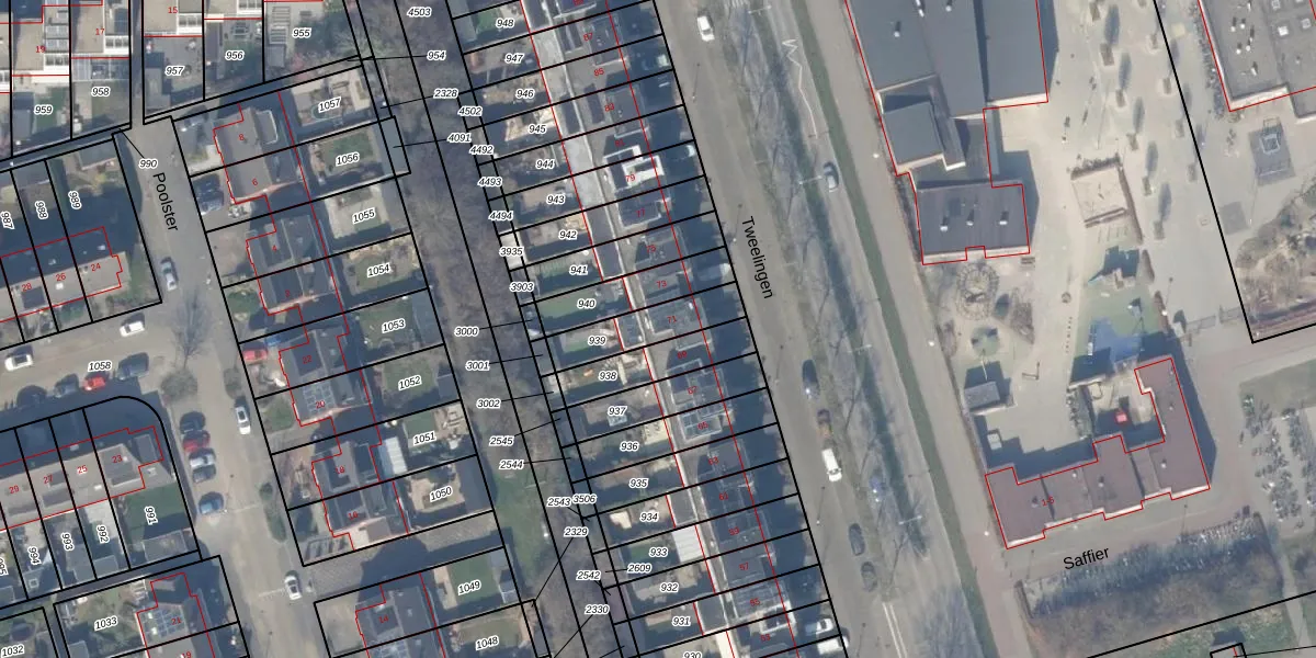 Gebruik de zoekbalk of klik op een perceel voor informatie over de adressen binnen dit perceel.