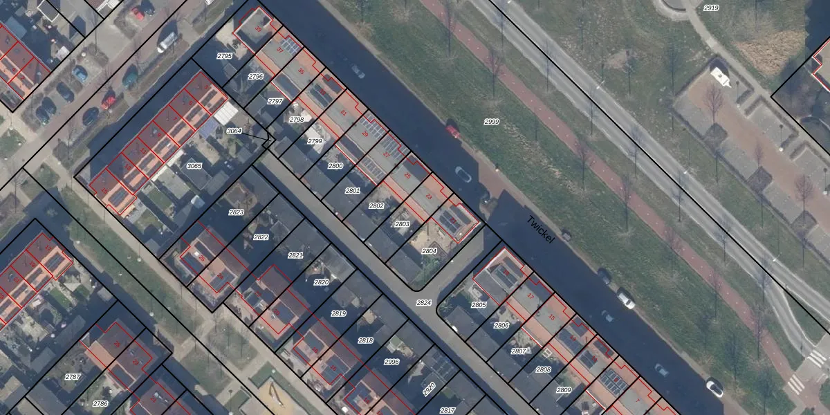 Gebruik de zoekbalk of klik op een perceel voor informatie over de adressen binnen dit perceel.