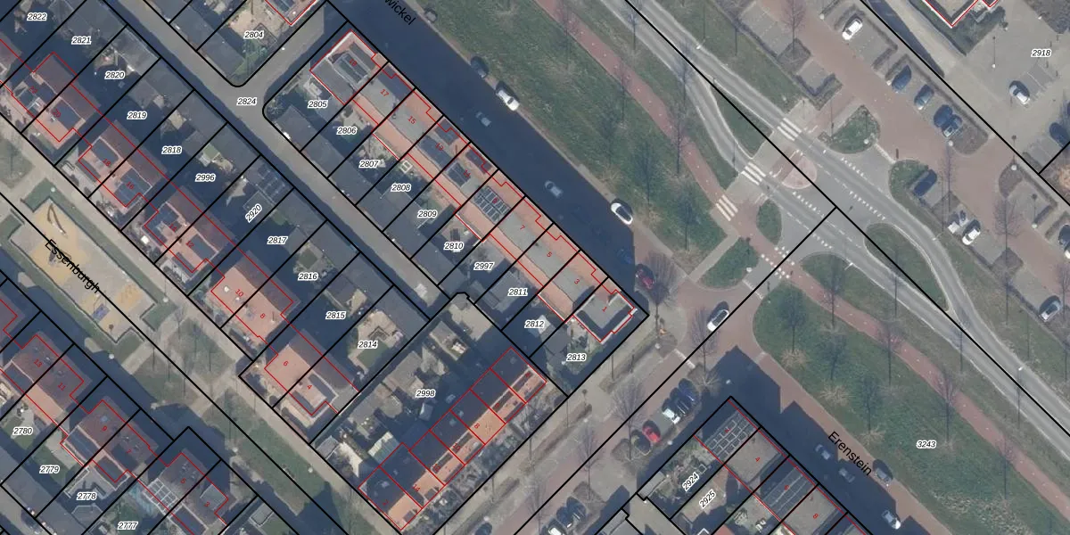 Gebruik de zoekbalk of klik op een perceel voor informatie over de adressen binnen dit perceel.