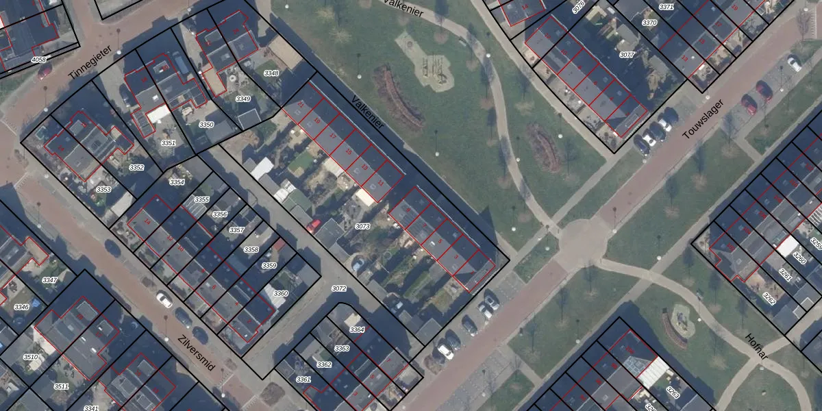 Het perceel waarop Valkenier 9 staat heeft een oppervlakte van 1970 m². Dit is een zeer groot perceel. De perceeloppervlakte wordt geregistreerd door het Kadaster. Gedetailleerde informatie over de maten van dit perceel kunt u vinden in het rapport Kadastrale kaart met maatvoering van Valkenier 9.