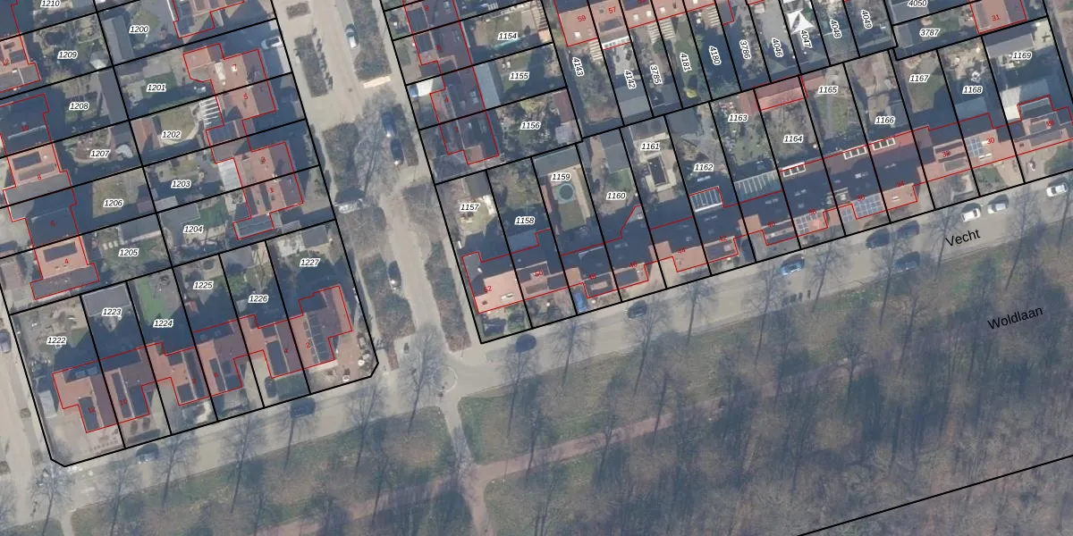 Gebruik de zoekbalk of klik op een perceel voor informatie over de adressen binnen dit perceel.