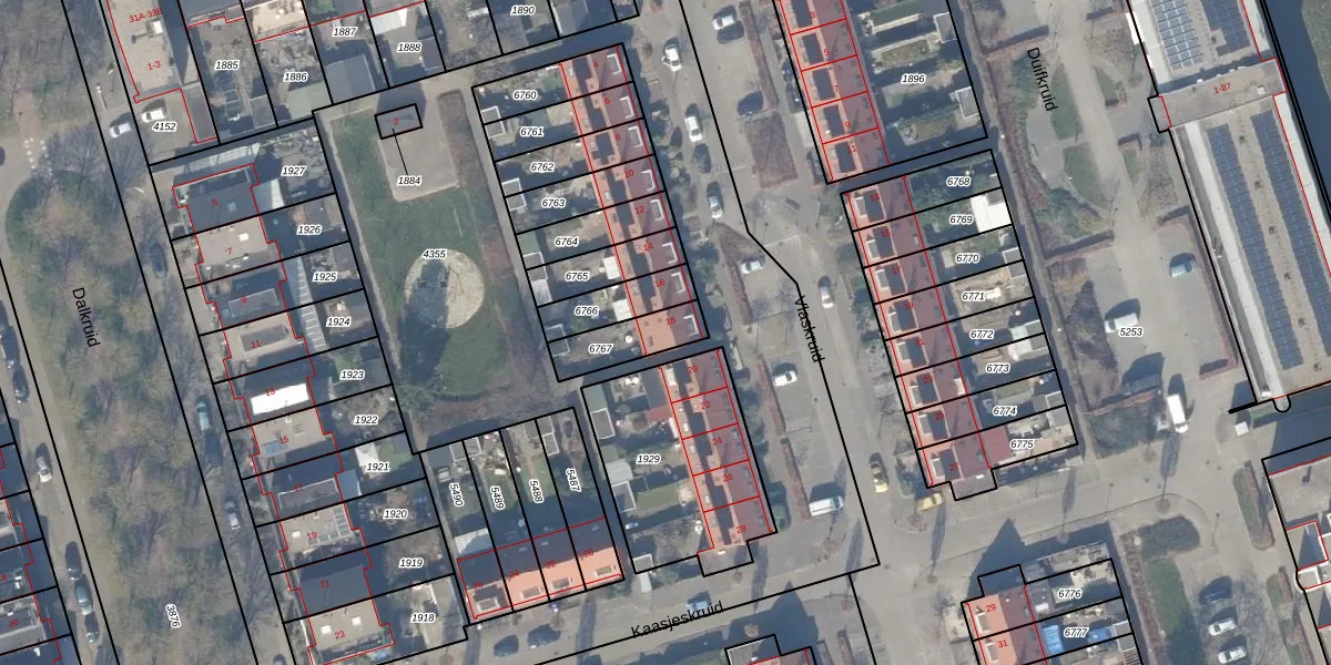 Het perceel waarop Vlaskruid 18 staat heeft een oppervlakte van 141 m². Dit is een middelgroot perceel. De perceeloppervlakte wordt geregistreerd door het Kadaster. Gedetailleerde informatie over de maten van dit perceel kunt u vinden in het rapport Kadastrale kaart met maatvoering van Vlaskruid 18.