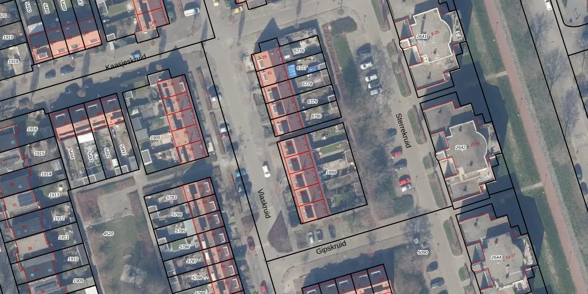 Het perceel waarop Vlaskruid 39 staat heeft een oppervlakte van 683 m². Dit is een groot perceel. De perceeloppervlakte wordt geregistreerd door het Kadaster. Gedetailleerde informatie over de maten van dit perceel kunt u vinden in het rapport Kadastrale kaart met maatvoering van Vlaskruid 39.