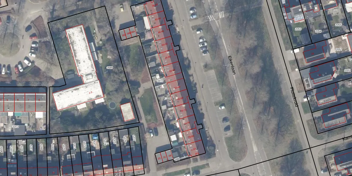 Het perceel waarop het adres ligt is ZWD03-A-3372. De afkorting 'ZWD03' staat voor kadastrale gemeente Zeewolde. De gemiddelde perceelgrootte in Zeewolde is 1,9 ha. Dit perceel is kleiner: de perceeloppervlakte bedraagt 1767 m². Het kleinste perceel in de kadastrale gemeente is 0 m² groot. De grootste perceeloppervlakte is 6,16 km². Op het perceel zijn 30 adressen aanwezig. De huidige grenzen van het perceel zijn digitaal in de Basisregistratie Kadaster (BRK) geregistreerd op 04-11-2008.