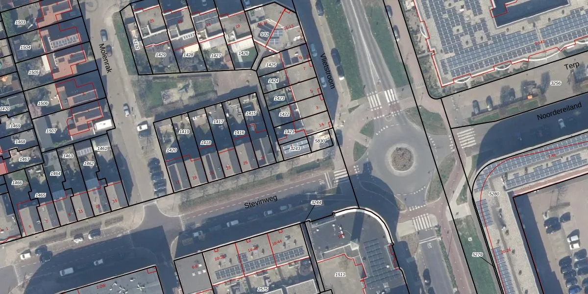 Het perceel waarop Vlietstroom 1 staat heeft een oppervlakte van 55 m². Dit is een klein perceel. De perceeloppervlakte wordt geregistreerd door het Kadaster. Gedetailleerde informatie over de maten van dit perceel kunt u vinden in het rapport Kadastrale kaart met maatvoering van Vlietstroom 1.