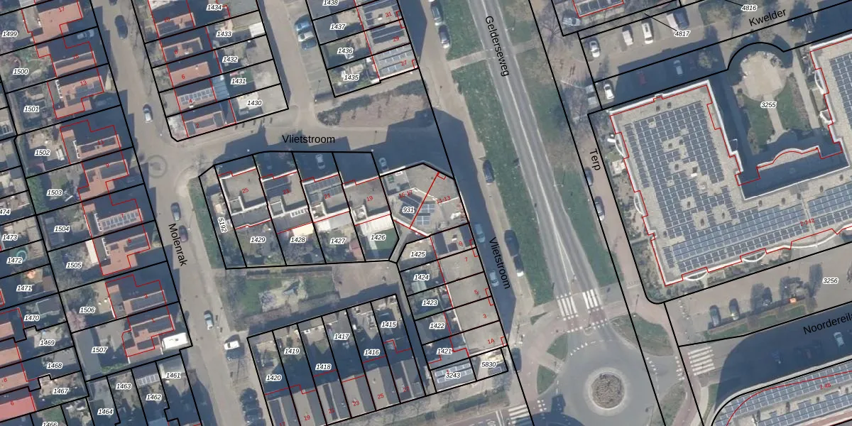 Vlietstroom 13 is gelegen op kadastraal perceel ZWD03A931. Deze kadastrale aanduiding is uniek en wordt gebruikt door het Kadaster om eigendomsrechten en andere zakelijke rechten vast te leggen. Het perceel maakt onderdeel uit van de kadastrale gemeente Zeewolde.