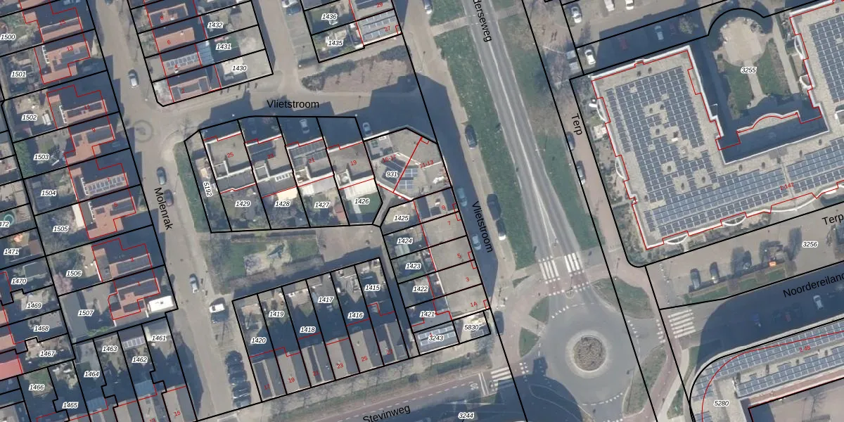 Vlietstroom 9 is gelegen op kadastraal perceel ZWD03A1425. Deze kadastrale aanduiding is uniek en wordt gebruikt door het Kadaster om eigendomsrechten en andere zakelijke rechten vast te leggen. Het perceel maakt onderdeel uit van de kadastrale gemeente Zeewolde.